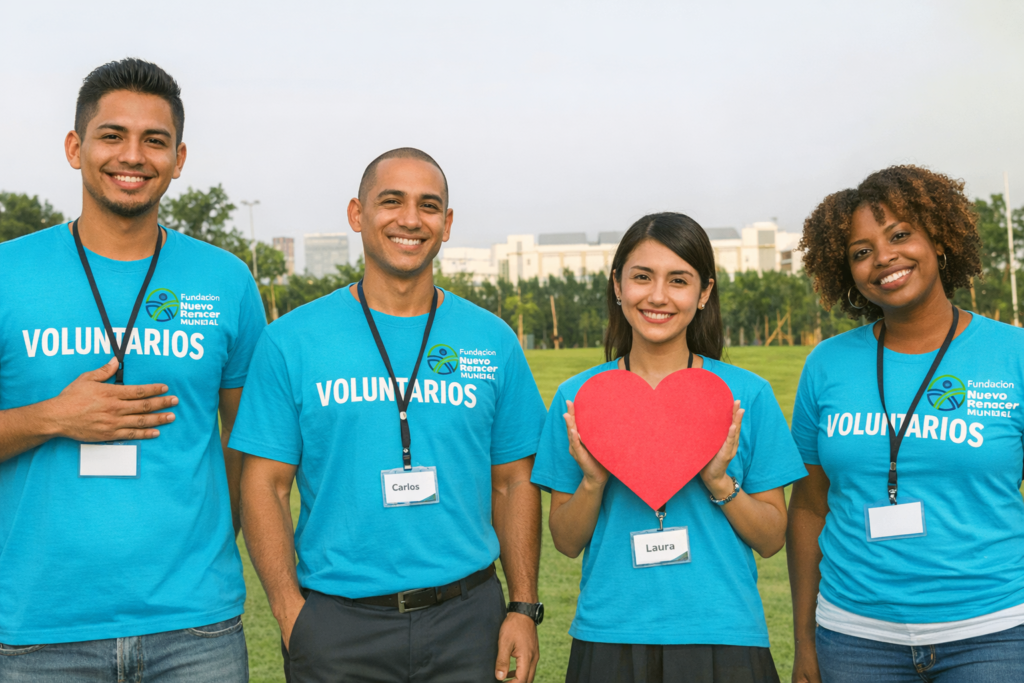 Tu tiempo y tu corazón pueden marcar la diferencia. Como voluntario de la Fundación Nuevo Renacer Mundial, tendrás la oportunidad de llevar esperanza, alegría y apoyo a niños, adultos mayores y familias que más lo necesitan.